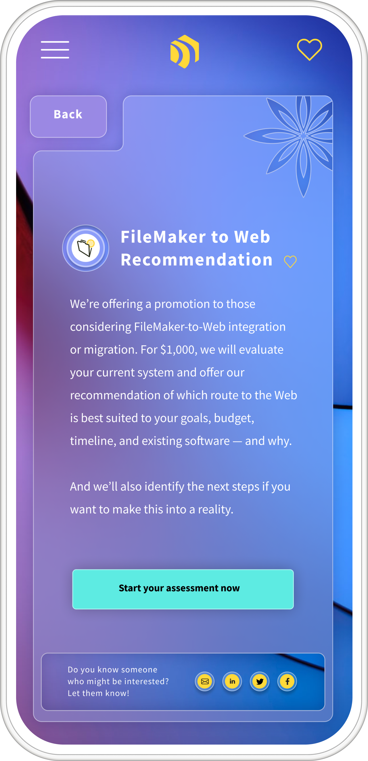 Creating an organic modular design system using glass elements and colorful backgrounds. A modular design was required to allow for a fluid system that stayed responsive to user input.