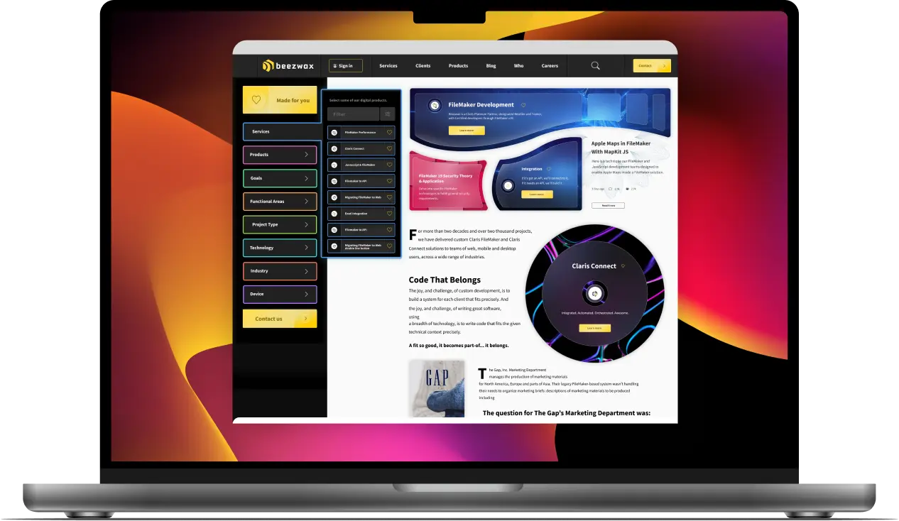 Based in Oakland, California, Beezwax Datatools Inc. provides custom FileMaker and database services for a wide variety of industry giants. Their list of clients is large, varied and second to none. Vuild was brought on to provide high level design for their customized website.